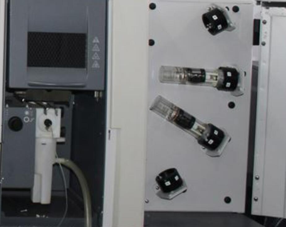 6.打開燈室門,手持燈座,將燈座突起對準相應的位置,按下白色固定夾按鈕,裝上空心陰極燈。打開元素燈,點擊"打開元素燈"按鈕,優(yōu)化空心陰極燈信號,點擊"優(yōu)化"按鈕,當能量條接近滿格時,點擊自動增益按鈕。