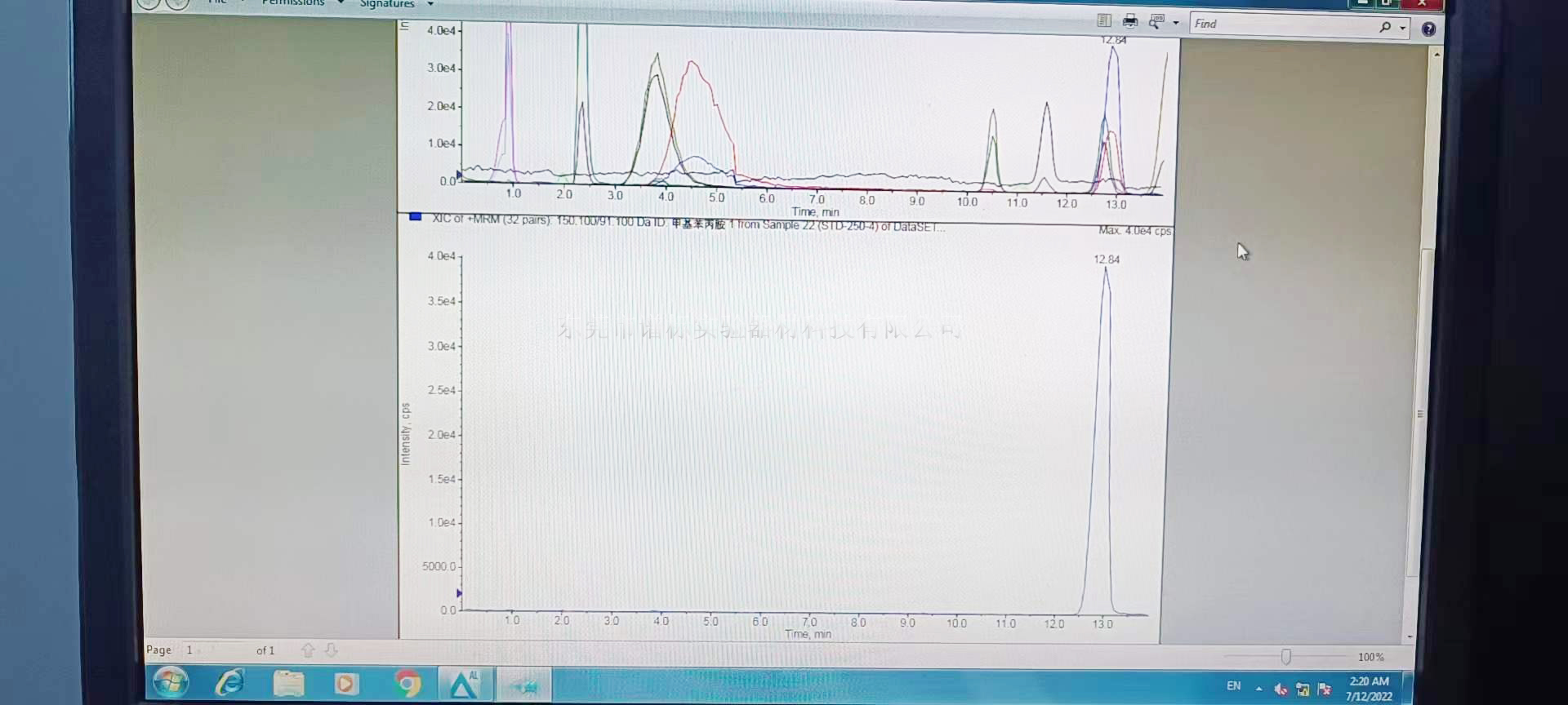 2022年7月11日,云南某大型司法鑒定中心購買我司液相色譜質譜聯(lián)用儀,型號:AB API4000+島津20A,儀器設備安裝調試,技術培訓完畢(性能可見譜圖),感謝客戶支持與認可。