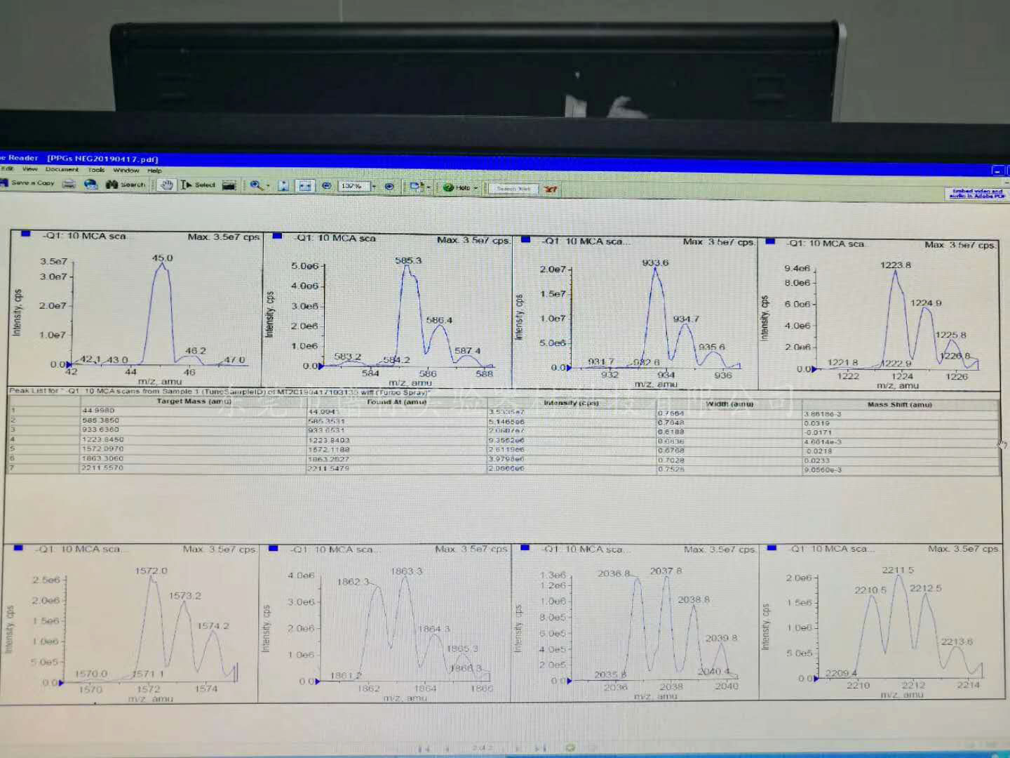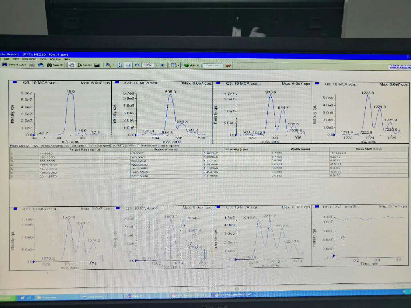 實(shí)話說:“真金不怕火煉”!好的二手分析儀器經(jīng)的住考驗(yàn),這臺二手高效液相質(zhì)譜聯(lián)用LC-MS-MS API4000+島津20A雙泵的質(zhì)量和性能如何?上圖的數(shù)據(jù)和譜圖曲線清楚展示,再次恭喜購得者!