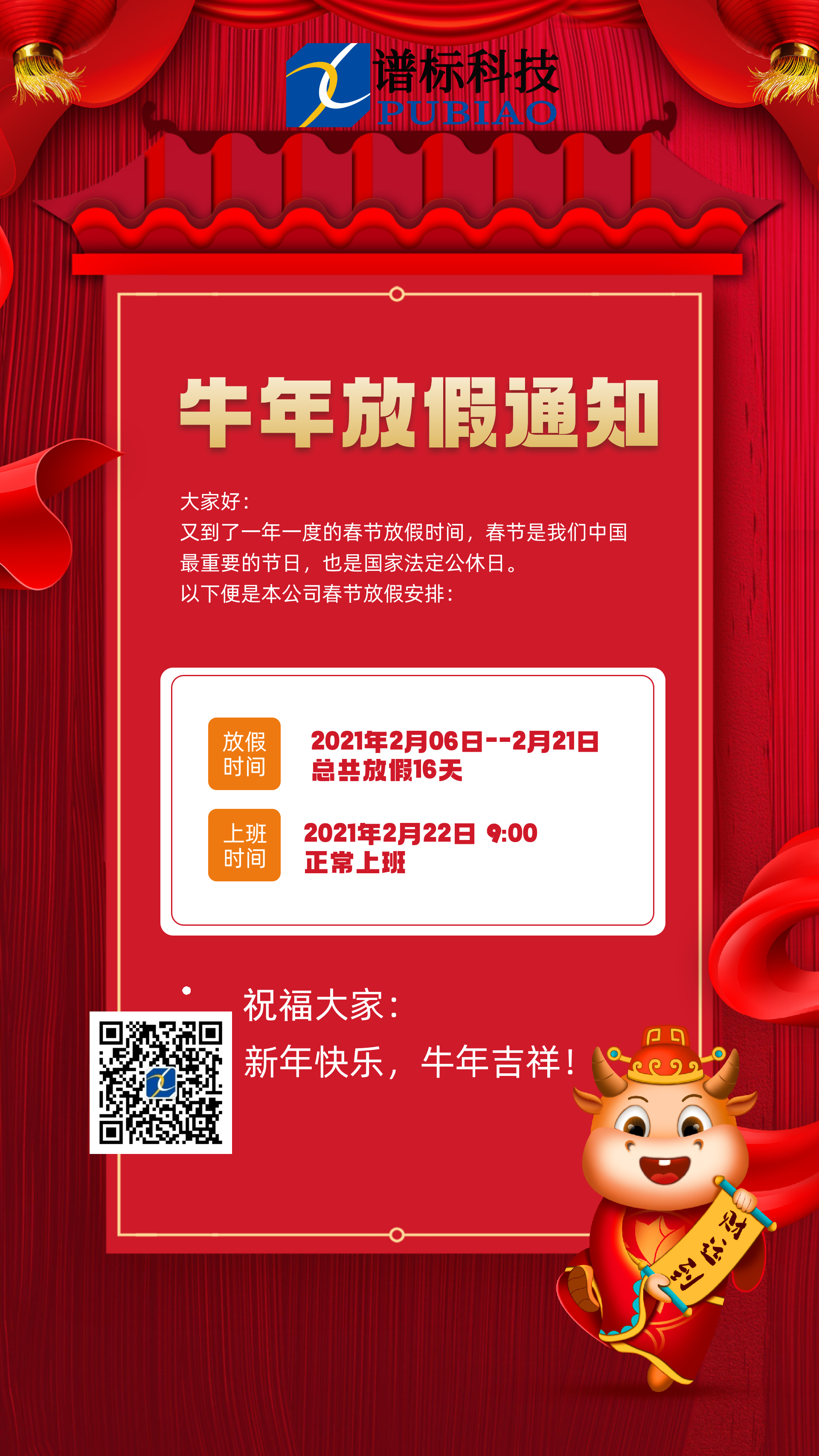 在發(fā)展中求生存,不斷完善,以良好信譽(yù)和科學(xué)的管理促進(jìn)企業(yè)迅速發(fā)展又到了一年一度的春節(jié)放假時(shí)間,春節(jié)是我們中國(guó)最重要的節(jié)日,也是國(guó)家法定公休日。我們公司春節(jié)放假安排如下: