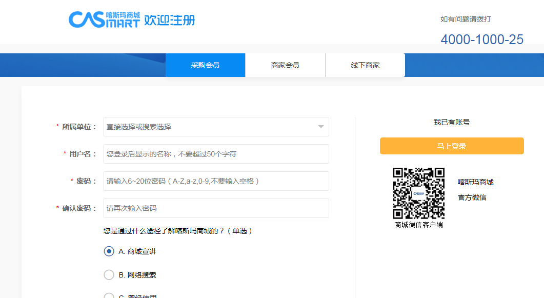 注冊網(wǎng)址:https://member.casmart.com.cn/member/register