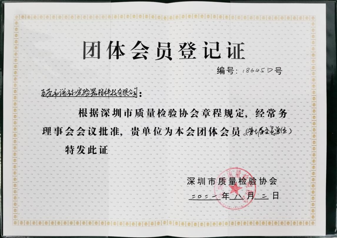 在發(fā)展中求生存,不斷完善,以良好信譽(yù)和科學(xué)的管理促進(jìn)企業(yè)迅速發(fā)展2021年7月~8月,深圳市質(zhì)量檢驗(yàn)協(xié)會(huì)授予東莞譜標(biāo)實(shí)驗(yàn)器材科技有限公司“深圳市質(zhì)量檢驗(yàn)協(xié)會(huì)第七屆會(huì)員單位”,并為其頒發(fā)證書(shū) 和團(tuán)體會(huì)員證。同事恭喜譜標(biāo)科技和用戶多了一層產(chǎn)品質(zhì)量保障憑證。