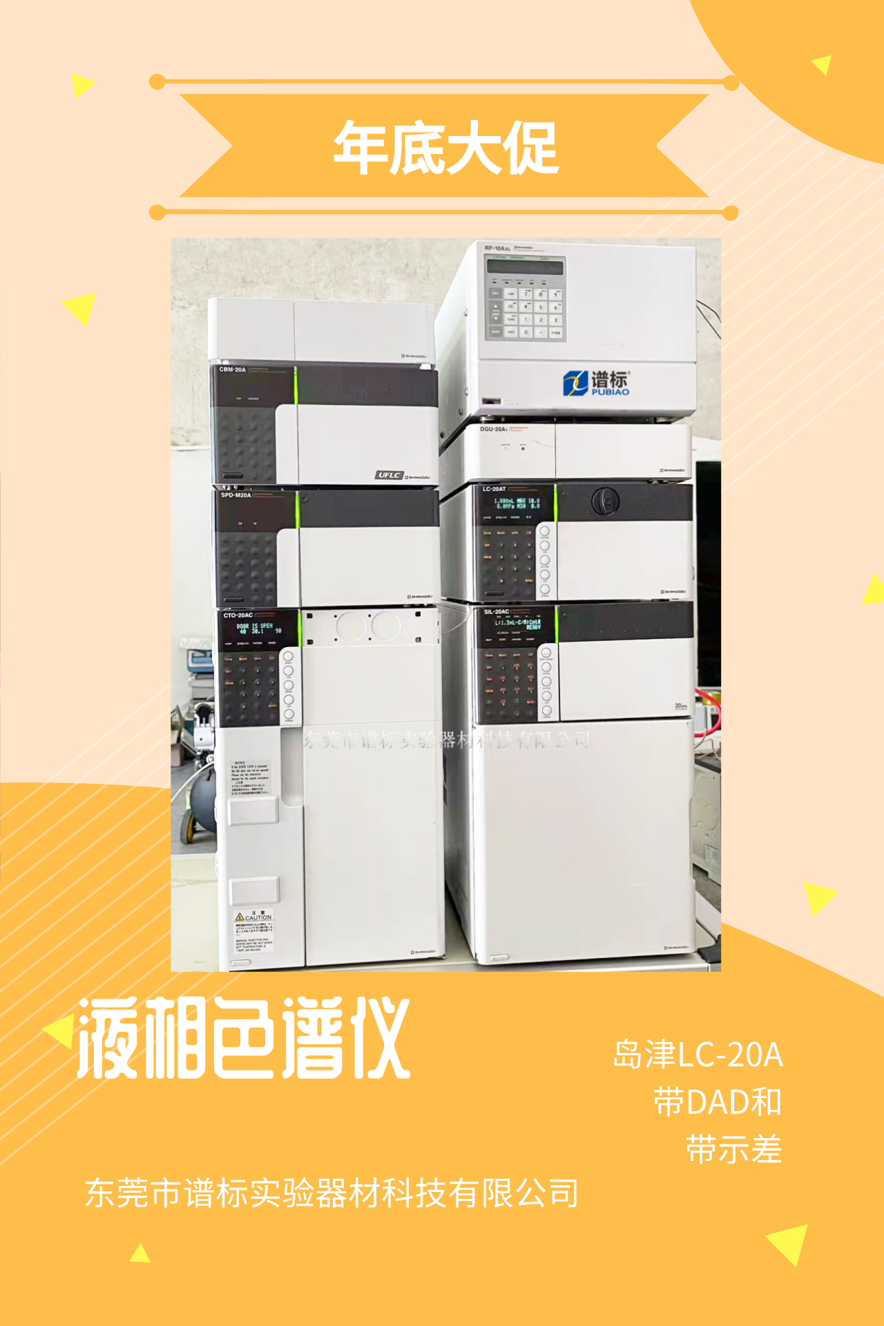 4 、品牌型號(hào):島津液相色譜儀LC-20A ,帶DAD和示差