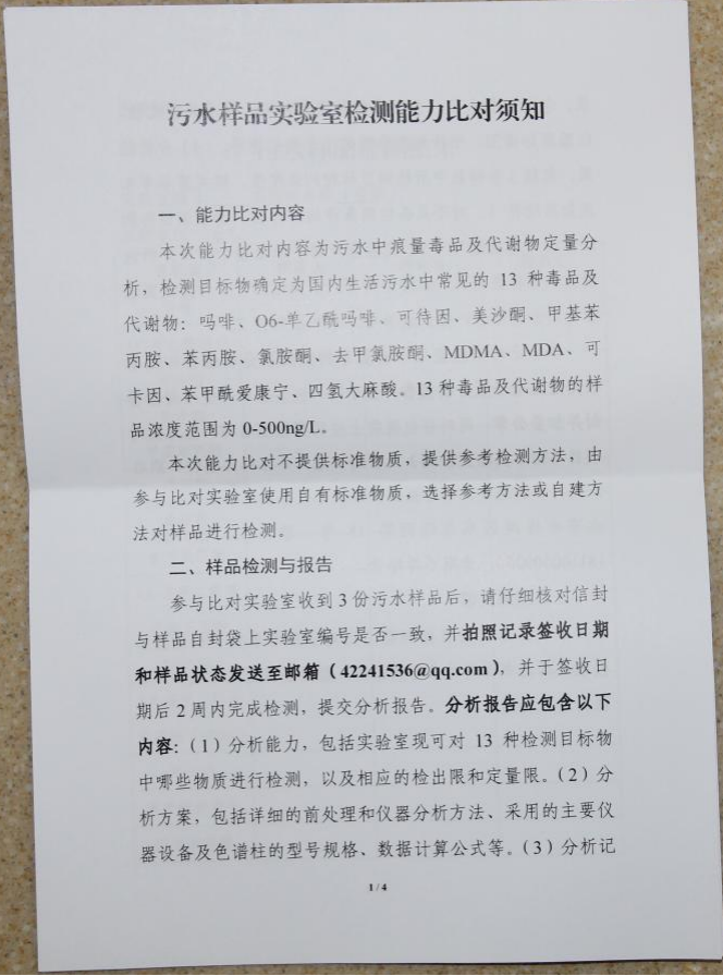 參與公安部污水中毒品定性定量能力驗證(盲測)