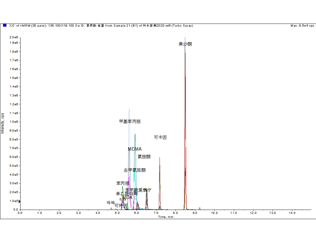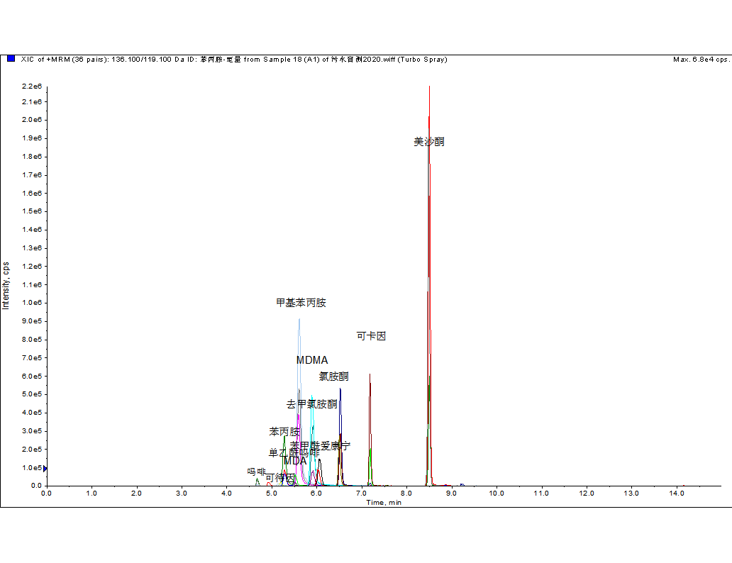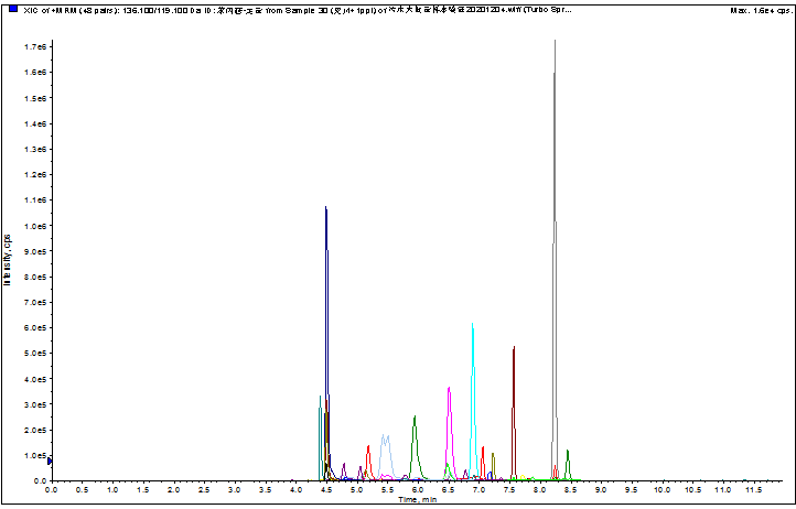 一針進樣,同時監(jiān)測多種毒品和可替寧的MRM總離子流圖