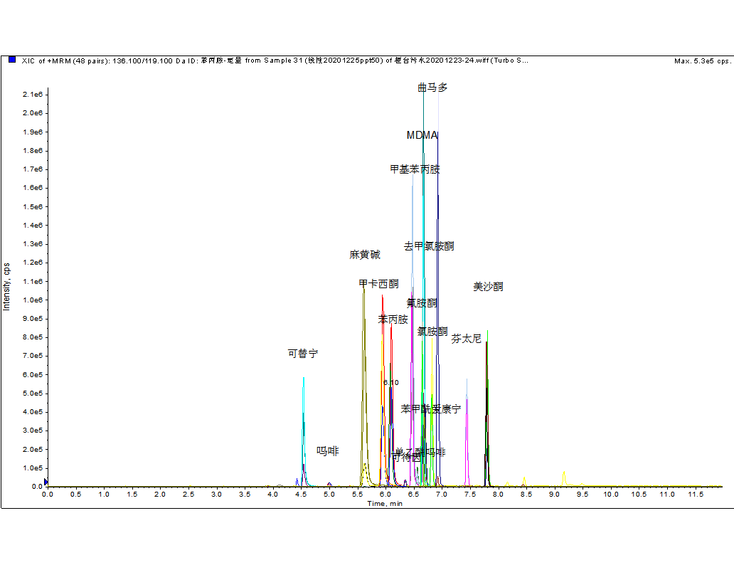 5. 無需多針進樣,即可同時分析多種化合物:一針進樣,可同時分析可替寧、堿性毒品類、酸性毒品類