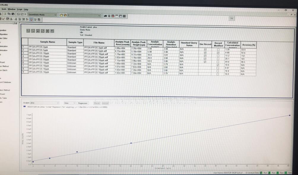 2023年12月26日,譜標工程師鄧老師在廣東某檢測公司進行技術服務培訓/方法開發(fā):高效液相色譜串聯(lián)質譜法-全氟化合物PFOA、 PFOS ,雙酚A(BPA)測定,分析儀器為譜標供應:液相色譜質譜聯(lián)用儀AB SCIEX API 4000 , 安捷倫液相色譜儀1200。