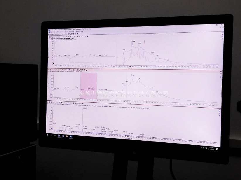 離子源:電噴霧電離(ESI),樣品通過保持在高壓下的電噴霧針噴射出帶電荷的液滴,最終演變成氣態(tài)離了。此源是化合物在液相中離了化。
