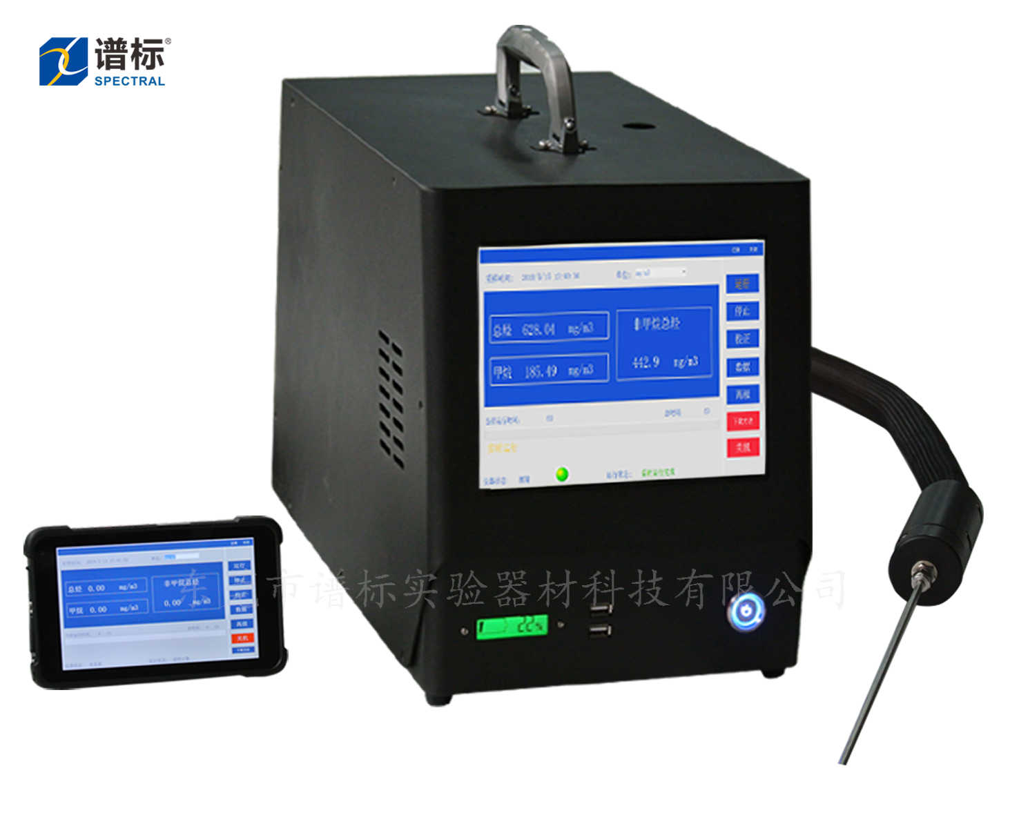 儀器采用探頭和伴熱管線(xiàn)采樣,色譜柱分離,氫火焰化離子化檢測(cè)器定性和定量。