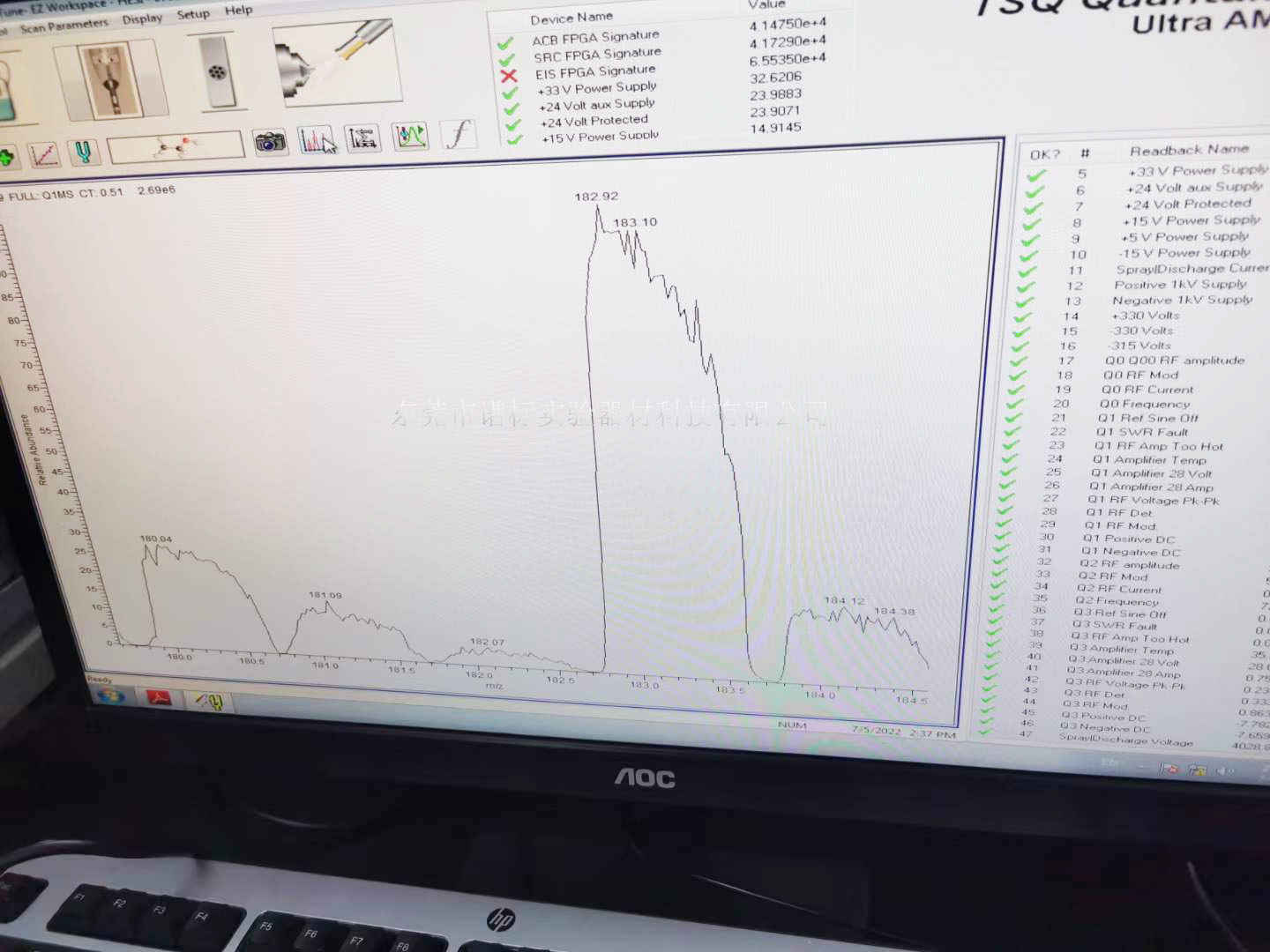 經(jīng)過(guò)二周時(shí)間的努力,出動(dòng)譜標(biāo)維護(hù)維修的技術(shù)力量:電子工程師、維修工程師、軟件工程師、應(yīng)用工程師四人通力協(xié)作,7月5日終于全部維修好(下圖譜圖為證),堪稱(chēng)完美。以后若有Thermo的液質(zhì)質(zhì)有問(wèn)題,找譜標(biāo)絕對(duì)靠譜。