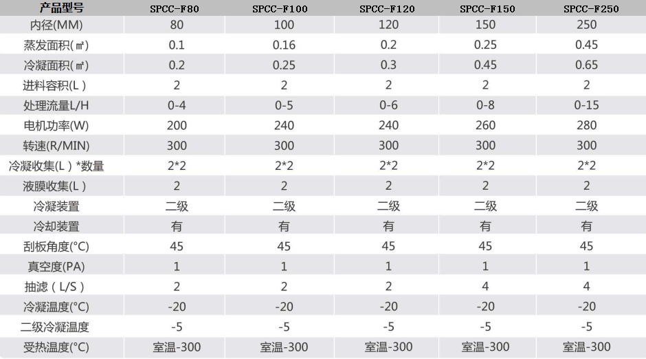 1.遠(yuǎn)低于物料沸點的溫度下操作,而且物料停留時間短;利于高沸點、熱敏及易氧化物料的分離。