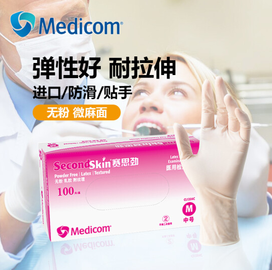 乳膠手套(無粉) Medicom 1204C 中號 100只/盒 多訂更優(yōu)惠